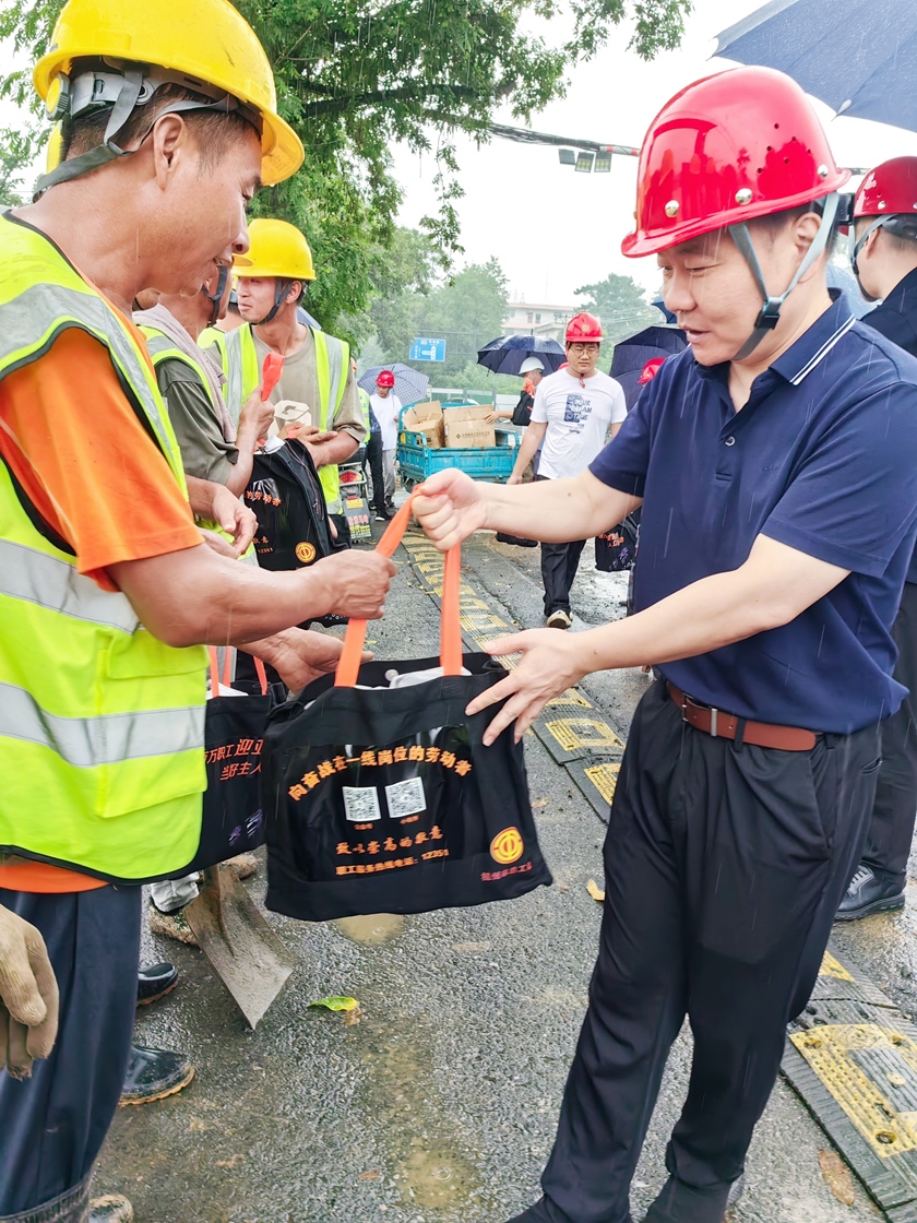 在現(xiàn)場,薛明君主任親切問候了每一位施工人員,并親手送上慰問禮品,叮囑他們在戶外工作時一定要做好高溫防護和消暑措施,避免中暑。